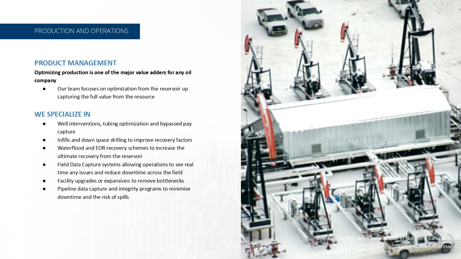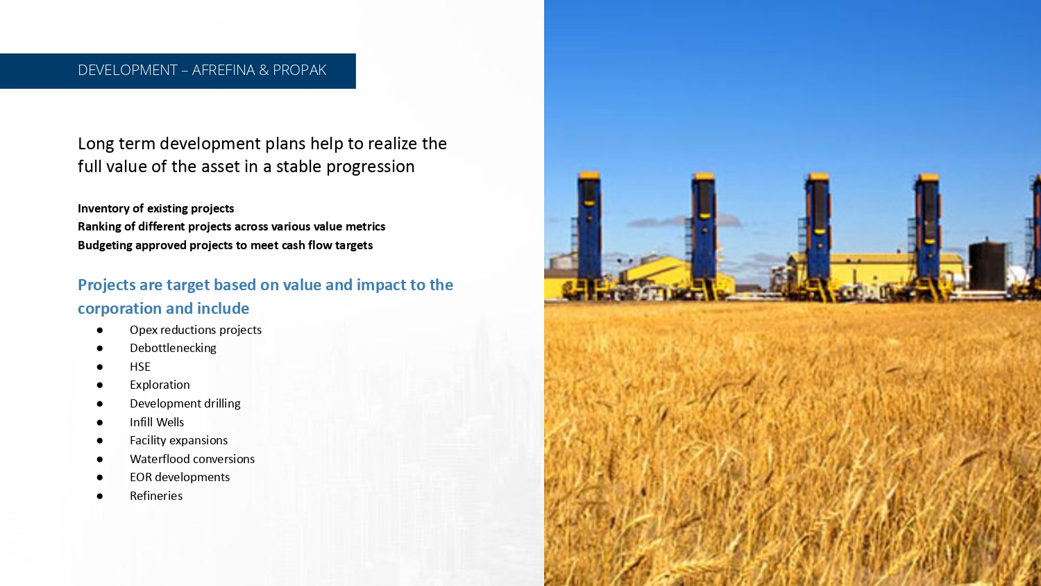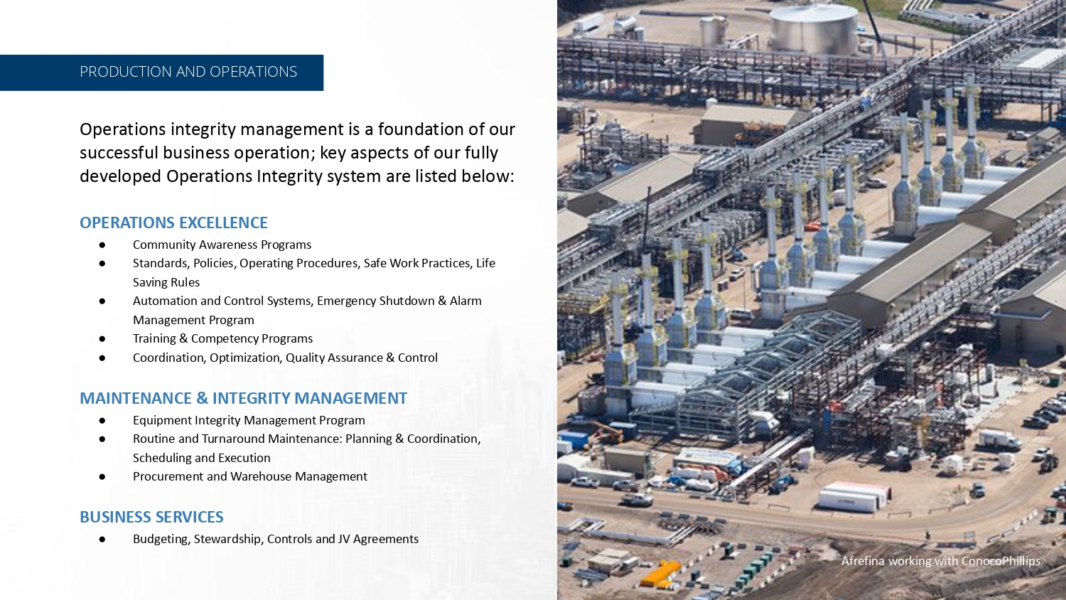 Production, Operations, Exploration, Drilling, Development, Major Projects Financed, Built and Operated