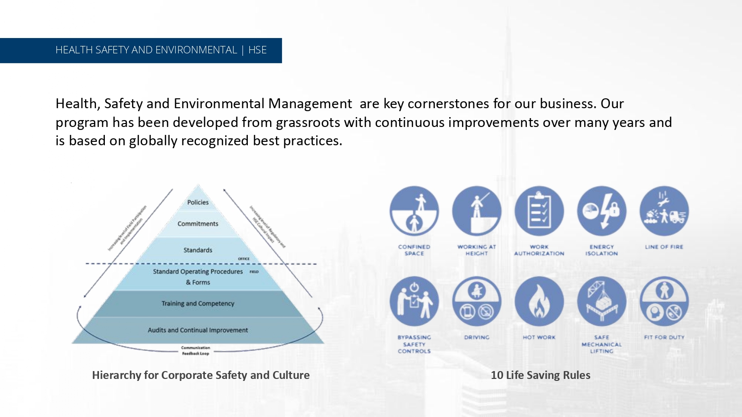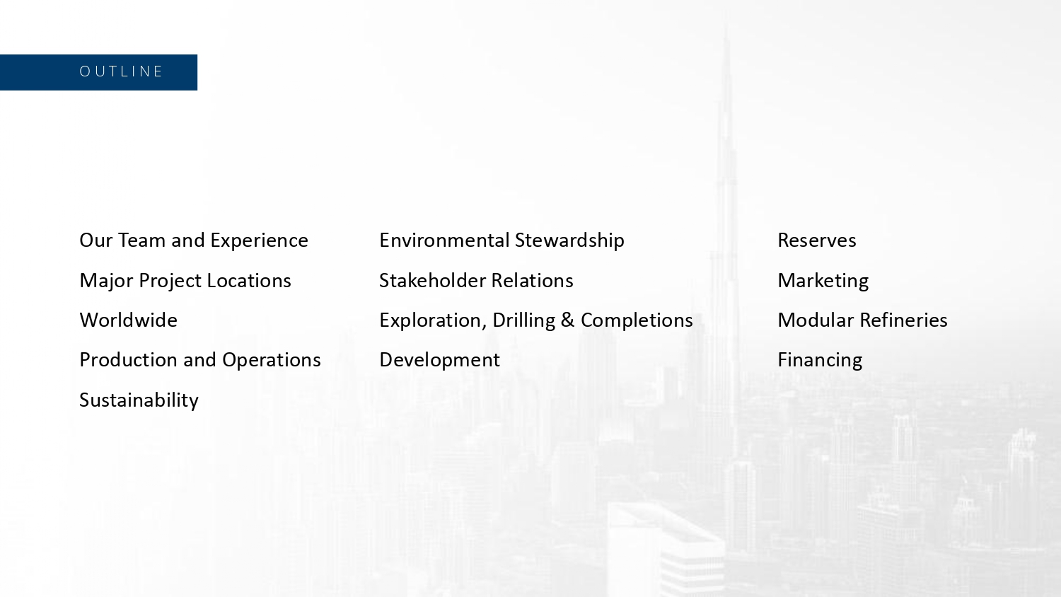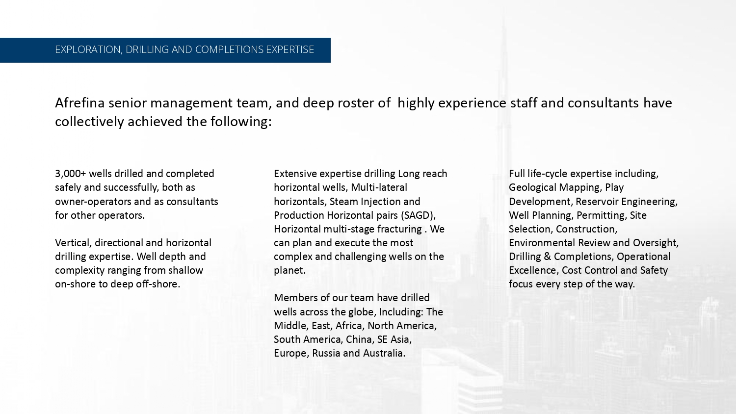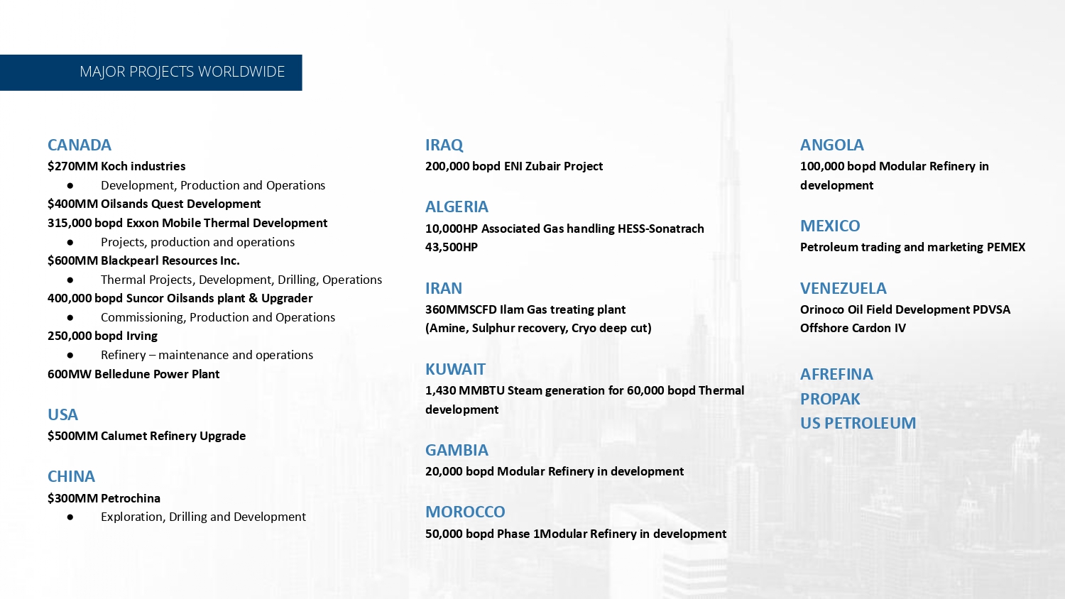 Production, Operations, Exploration, Drilling, Development, Major Projects Financed, Built and Operated